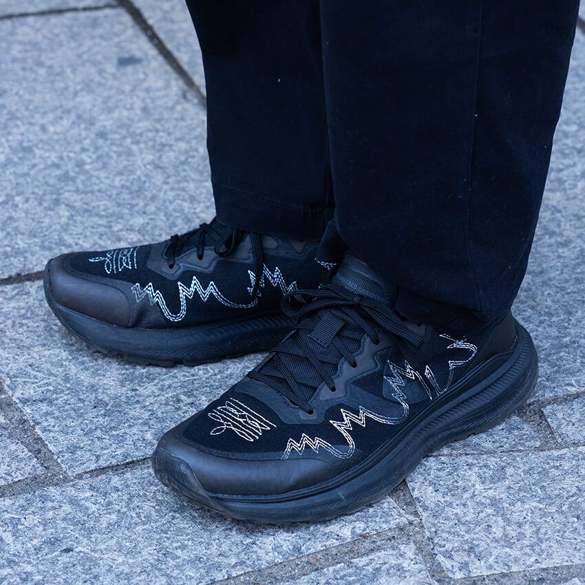 落ち着きのある着こなしだが、どこかモダンに映る。言わずもがな、ブラック&グレーによる統一こそが大きな要因。