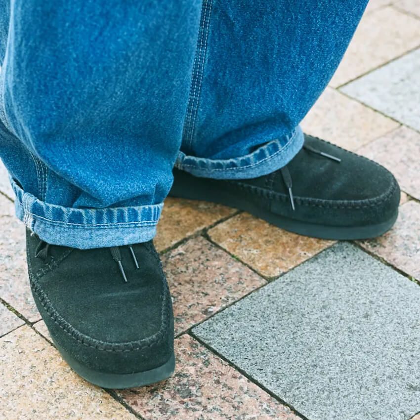 ▶川名さんのスナップをすべて見る川名 健さん(35歳)「ワラビー」と同じモカシンシューズではあるが、ブランケットステッチがほっこりとしたアクセントになった「ウィーバー」もまた、名作のひとつ。やわらかい印象だから、スムースレザーのカーコート×ブルーデニムというピリッとしたコーディネイトのいい緩衝材になっている。