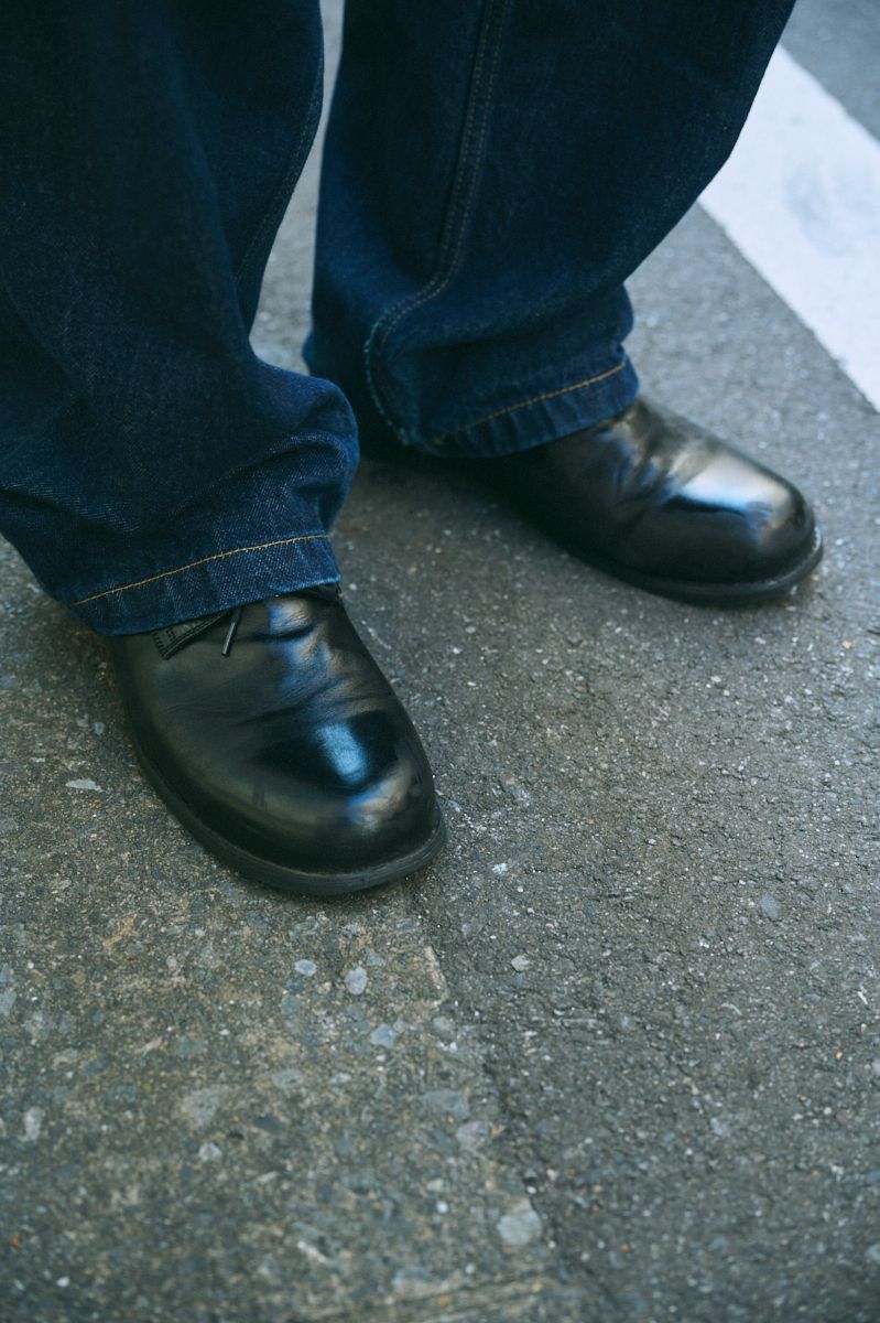 ▶︎柳川さんのスナップをすべて見る柳川さん(25歳)スーパーシンプルなワークジャケットを、気をてらわずにあっさりとしたアイテムで装うその心意気が共感できる。色落ちの少ないカーハートのデニムと黒いレザーシューズ、そしてジャケットのジップは上まで締めて。