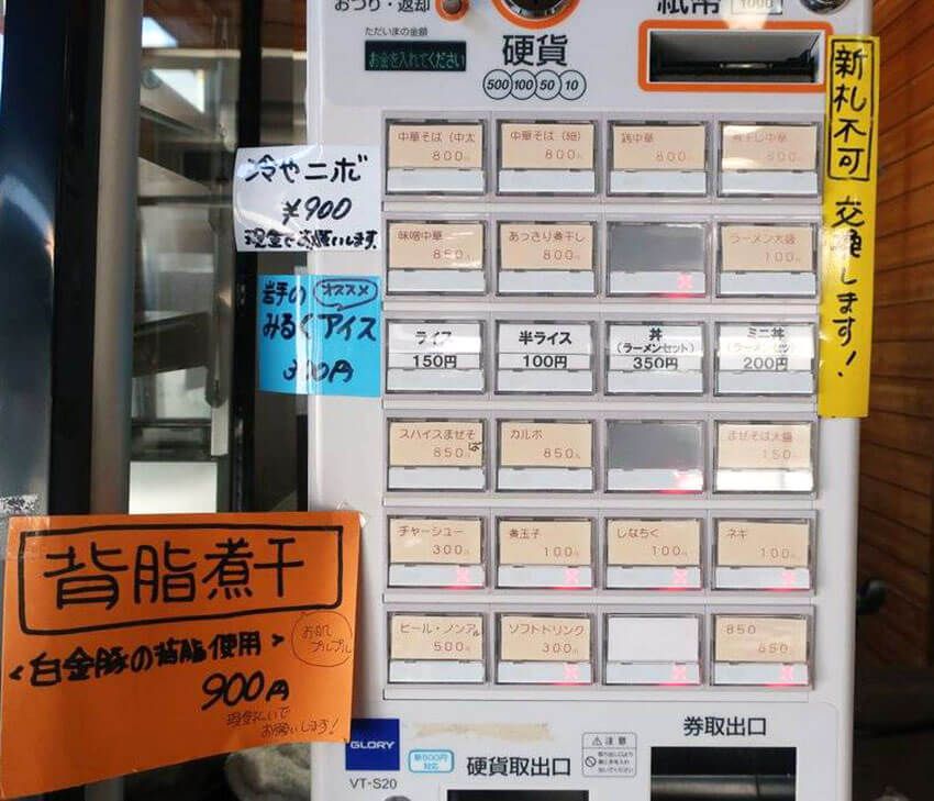 入口近くに小さな券売機があり、「中華そば」、「鶏中華」、「煮干し中華」、「味噌中華」等の汁そばに加え、「スパイスまぜそば」、「カルボ」の2種類の「汁なし」を提供。今回私は「カルボ」を注文させていただいた。