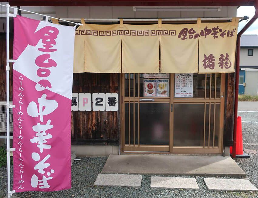 同店の外観は、昔ながらの食堂然とした年季の入ったもの。屋号に刻まれた「屋台の中華そば」の7文字が、「橋龍」が屋台をルーツとする純然たる地元密着型店舗であることを雄弁に物語る。