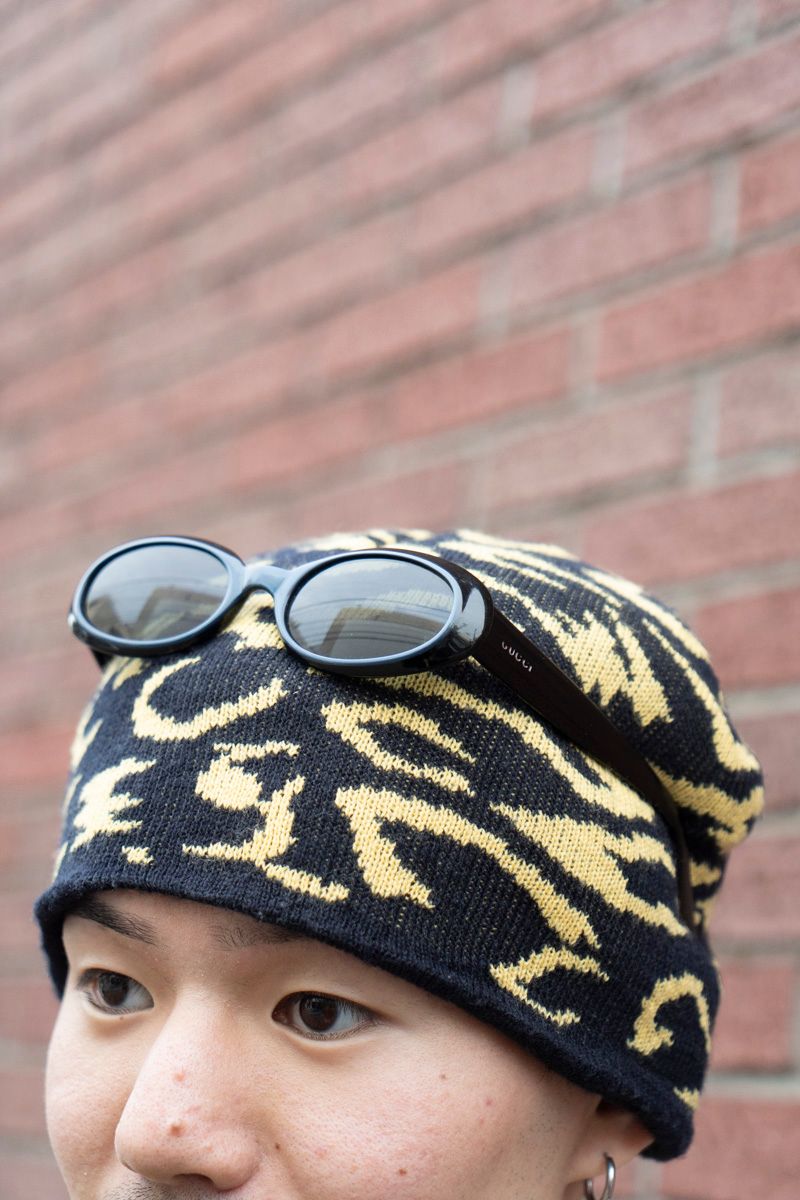 色の配分もパーフェクト。グレーの上下からビビッドイエローをチラリと覗かせて、両方の色味を拾ったニットキャップで見事に辻褄を合わせる。グッドバランス!