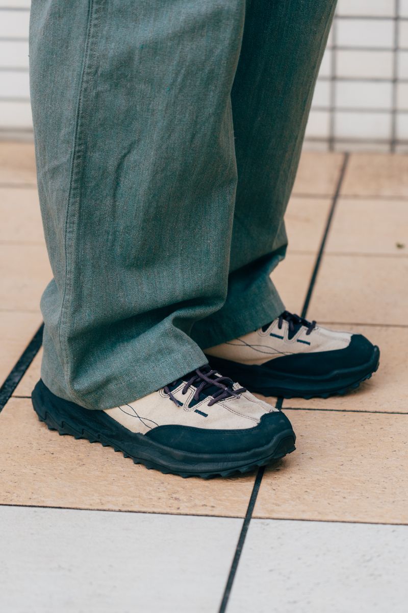一方でタフな軍モノとは思えないほどシックな色&綺麗なシルエトのパンツを選び、アウトドア然としたブルゾンの配色をアクセント的に活かす。粋な大人の采配が光る。