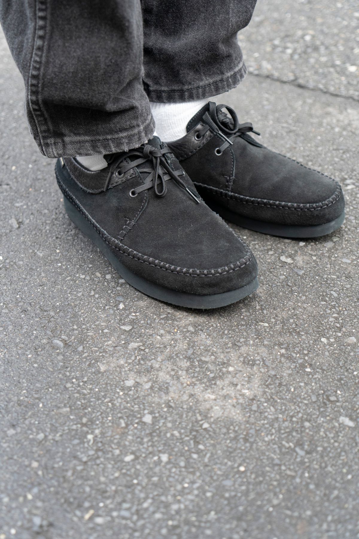 クラークスのウィーバーはブランケットステッチが装いのアクセントにもなる、隠れた人気モデルで歴史も長い。素材使いだけじゃなく、そんな選びもまた着こなしに深みを与えてくれる。