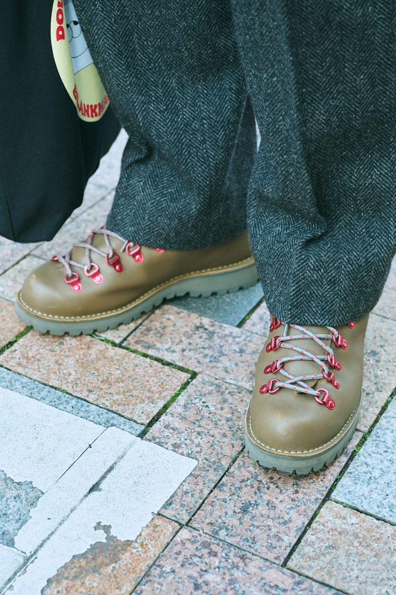 かたや足元には、シャイニーなハトメとカラフルなシューレースが楽しいコラボブーツを抜擢。凛々しさ、逞しさ、それだけじゃない懐の深さ。いい大人の選択ダナー。