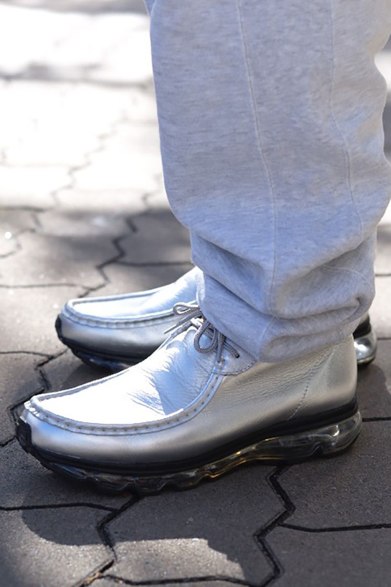 その爽やかな見た目に少しのスパイスを加えるべく選んだのは、シルバーカラー&ソールのエアーで近未来な雰囲気を纏ったモカシンシューズだ。