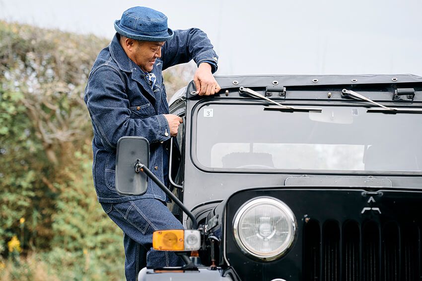 「ジープが1番好きかというとそうではなくて、ほんとに3台とも魅力はそれぞれです。共通してるのはどれも日本の車で、マニュアル車という点。昔の日本で走っていた普通の商用車というのも一貫しています。僕の場合、話が合うのは旧車好きの人たちではなく、その辺にいるおっちゃんたちなんですよ(笑)」。