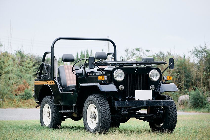 1956年から1998年まで製造・販売されていた四輪駆動車。もともとは第二次世界大戦中に米軍が使用したジープを、戦後、国内で唯一ライセンス生産したのが当時の三菱重工。山口さんが所有するのは1983年製のJ59型。45年間フォルムはほぼ変わらず、屋根はもちろん、ドアも幌でできている。