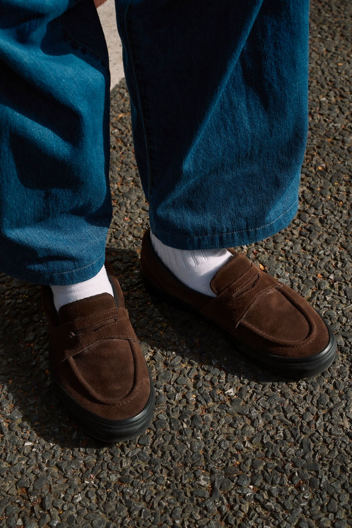 これだけでコーディネイトがまとまるから、もちろんインナーやスニーカーは余計な色を入れず白でオールオッケー。それにしてもこのパンツ、近くでみれば起毛もしていて、季節感があるなぁ。