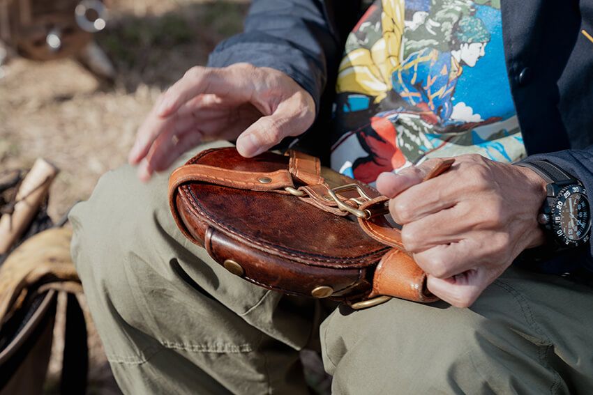 蓋もコンパクトにしまえるし、持ち手を広げればお皿としても使えるんです。職人の技術と工夫が詰まっていますよね。専用の革ケースも格好良いし、めっちゃ気に入ってます」。