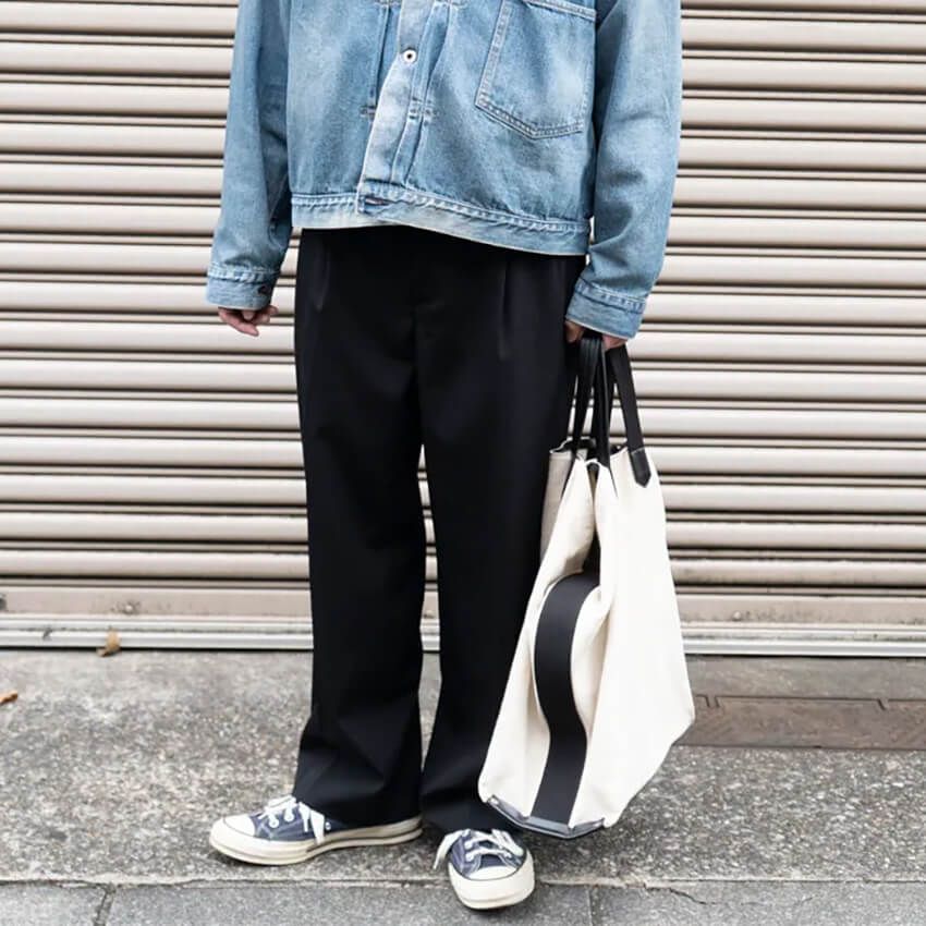 ▶西川さんのスナップをすべて見る西川郷介さん(42歳)タック入りの“ゆるパン”、ドロショル気味のGジャン。アウターと同ブランドで揃えたTシャツ。オーソドックスな合わせに、センスフルなひとクセが光る。