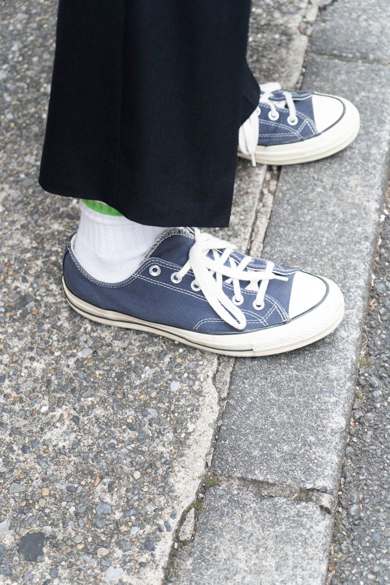 その絶妙な違いをさりげなく漂わせるには、シューズ選びはオーセンティックが吉。コンバースが誇る名機、ジャックパーセルなら不足なし。文句なしだ。