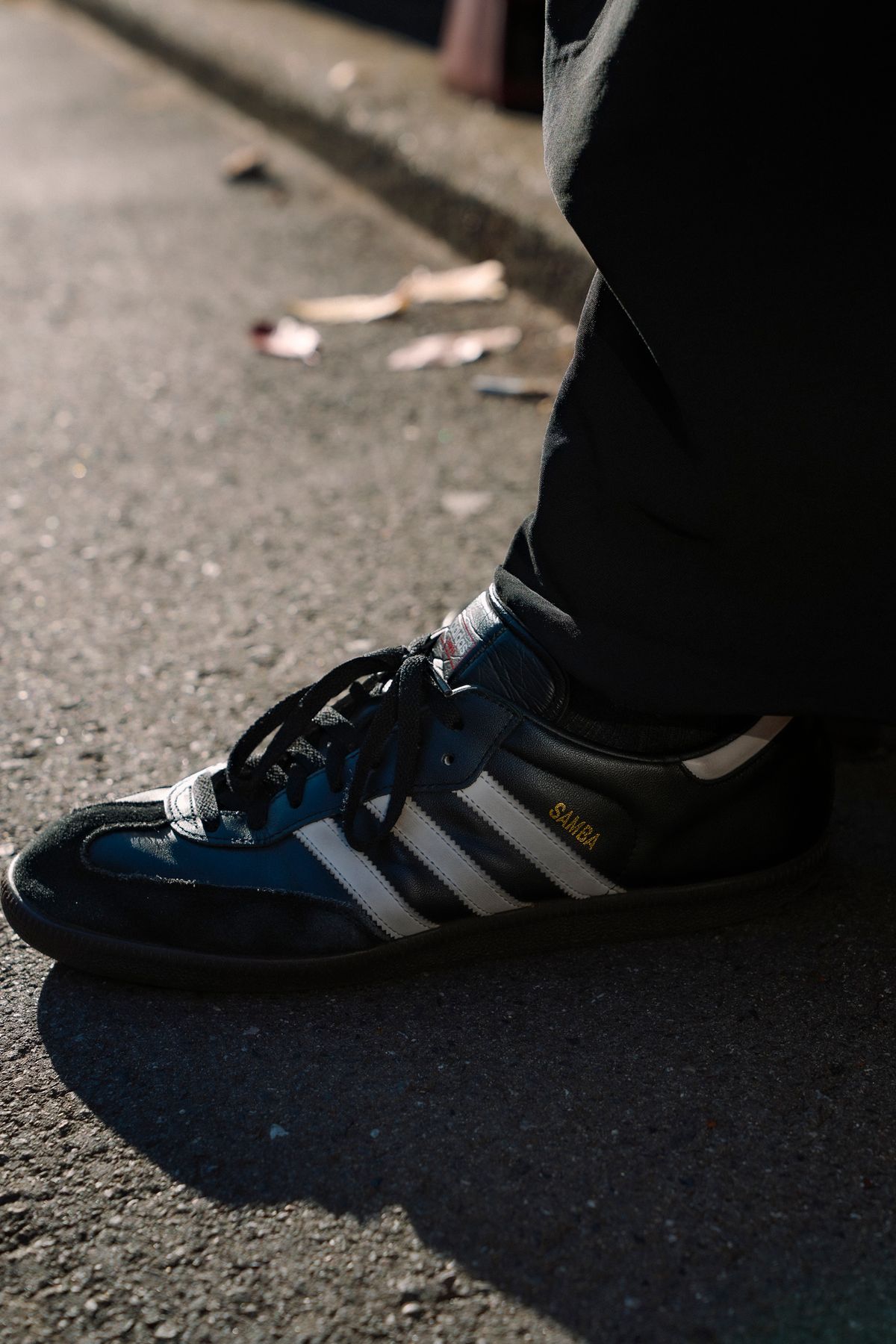 ▶井上さんのスナップをすべて見る井上遼太さん(27歳)上と同じアディダスのサンバを着用するも、こちらはコラボモデルではなくインライン。ヌバックが映える精悍な佇まいで、全身黒を上品かつアクティブにまとめ上げた。