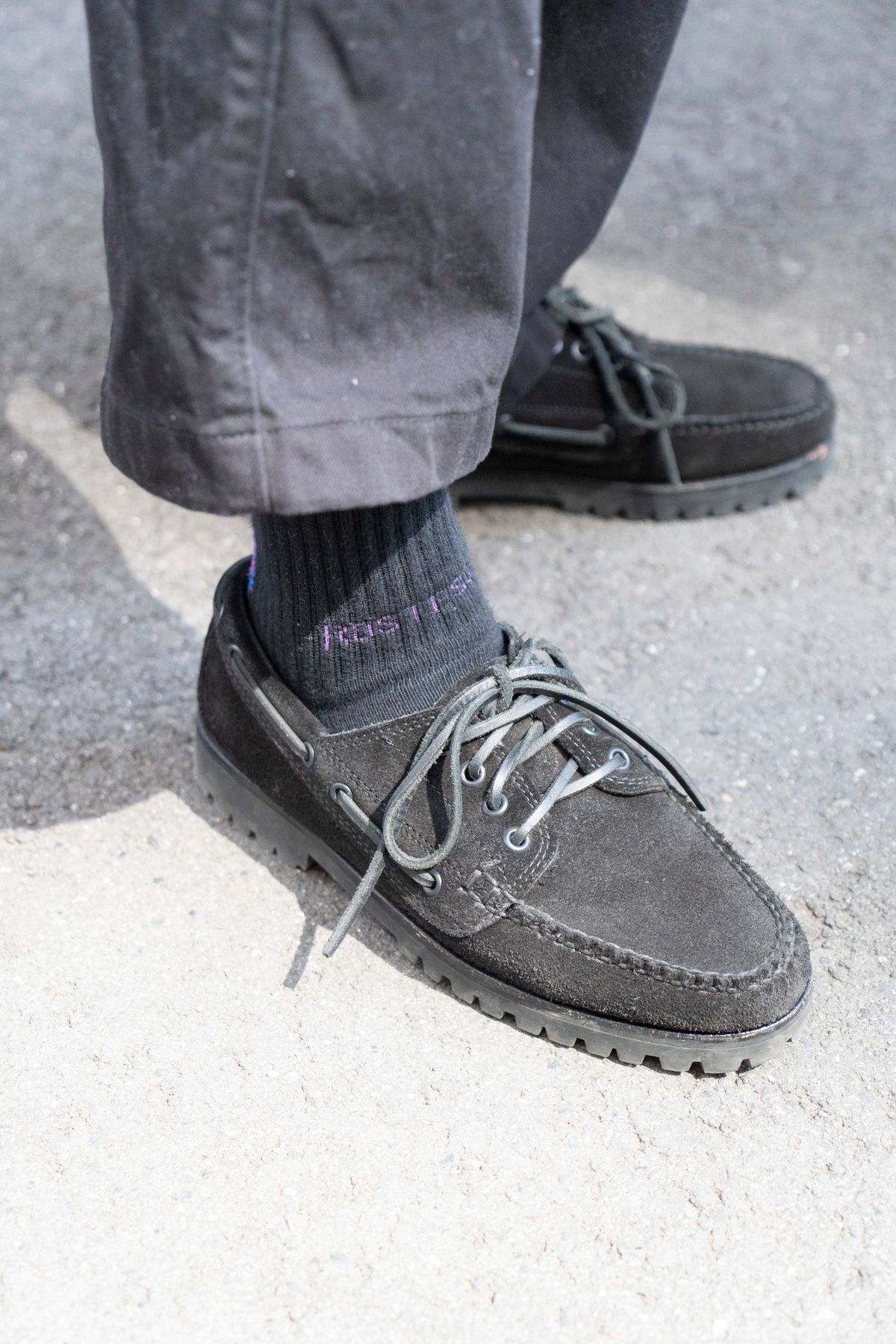 ユニークな上半身とは打って変わり、パンツ&シューズはブラックで揃えて潔く。メリハリが効いたバランスで、楽しくも引き締まったウィンターコーディネイトを満喫。