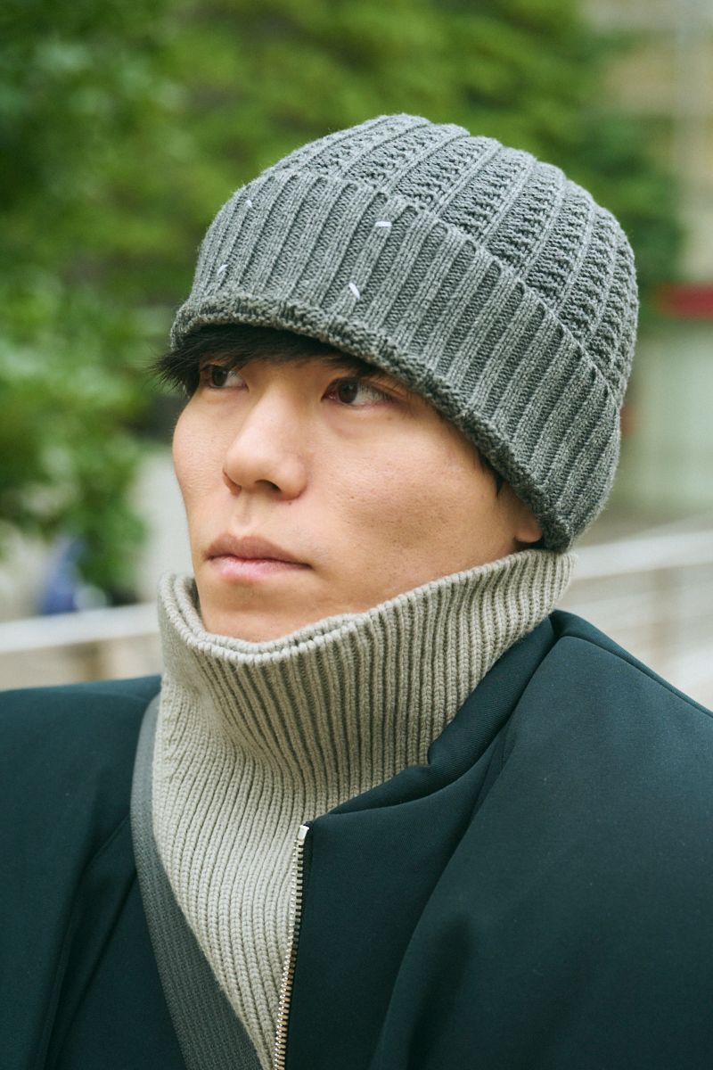 ▶小林さんのスナップをすべて見る小林遼平さん(28歳)ハイネックのセーターに呼応するような編み地が程良く主張するニットキャップはメゾン マルジェラのもの。フロントの4ステッチは個性的なジャケットや色落ち豊かなデニムにも劣らない絶大な存在感を誇るアクセントに。