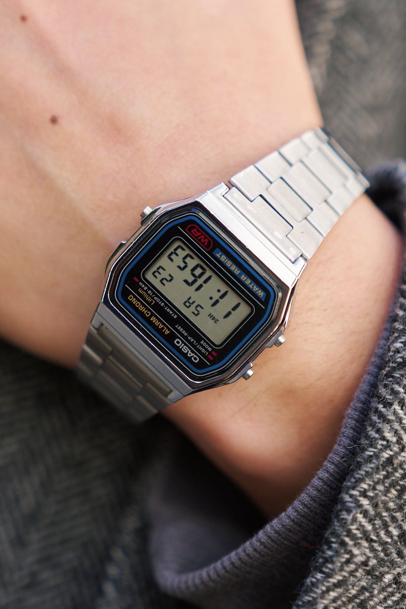 コート、シューズ=ともにザラ スウェット=リーダム×エモノン パンツ=リーダム×エモノン 眼鏡=ノーブランド 腕時計=カシオ