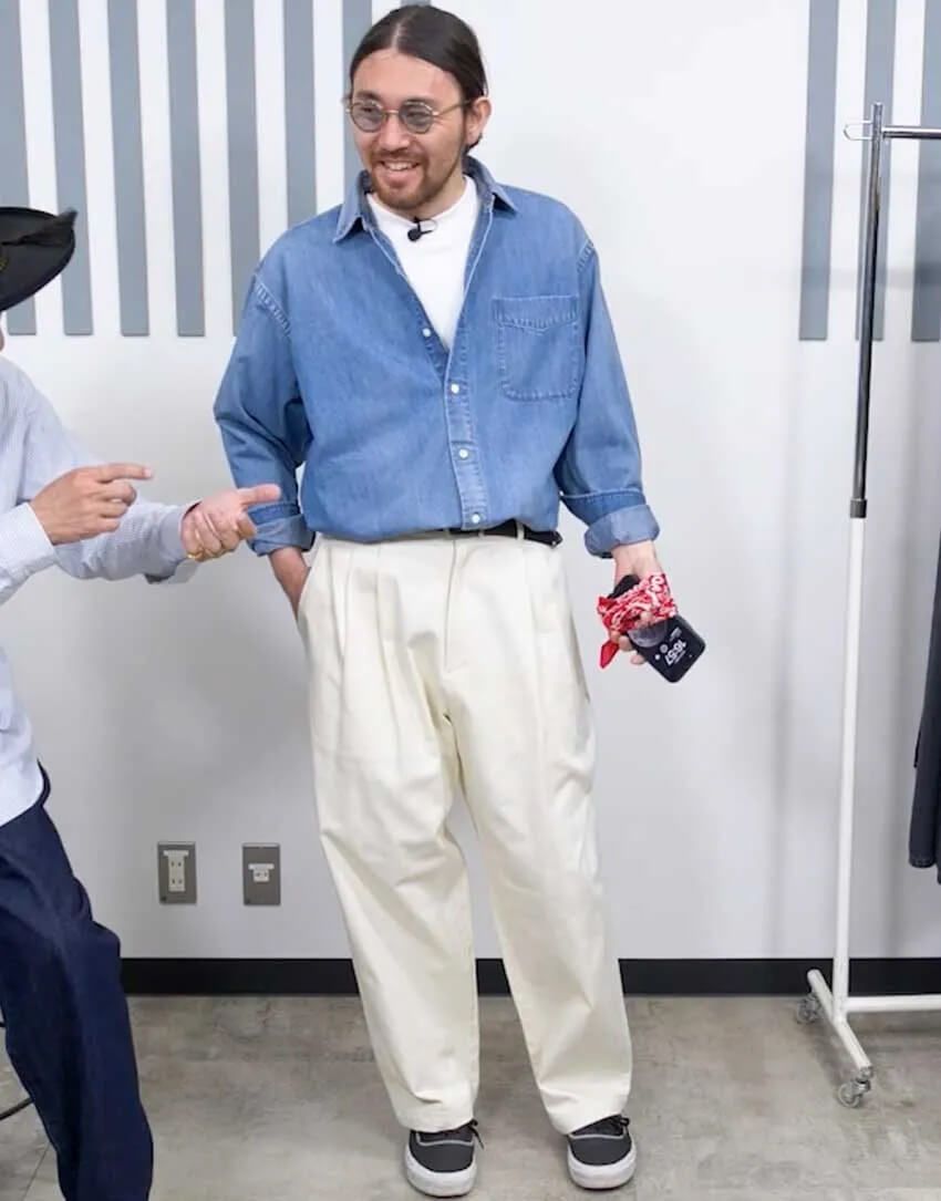 キクチ 最近の傾向はインディゴ同士で濃淡の違う上下を着用したり、ブラック&ホワイトの配色で合わせたりも良いかなって思う。