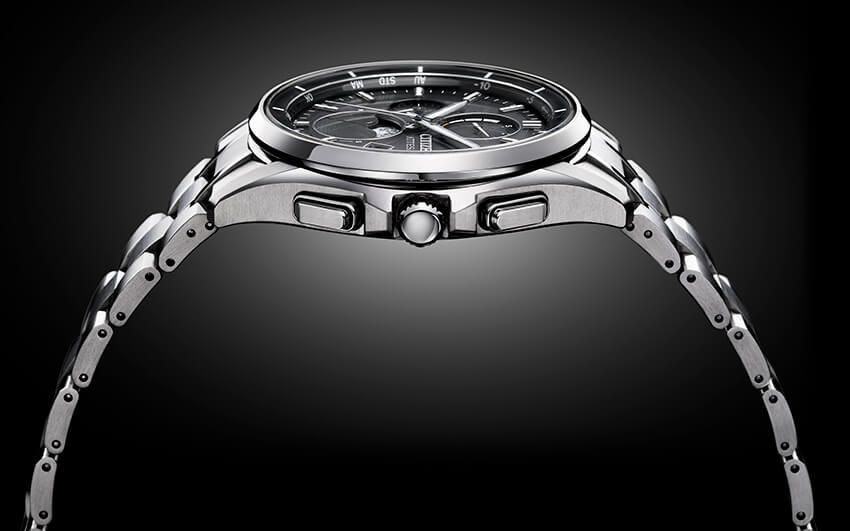 スーパーチタニウムケース、41.5㎜径、光発電エコ・ドライブ。14万8500円/シチズンお客様時計相談室 0120-78-4807