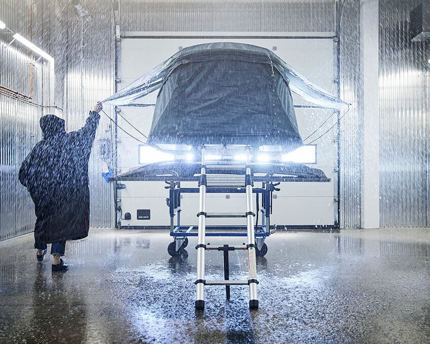 驚くべきは、こういった超過酷なテストはスーリー全製品に適用され、安全性がより求められるルーフトップテントやベビーカーなどは、さらなる厳格なテストが行われるのだ。