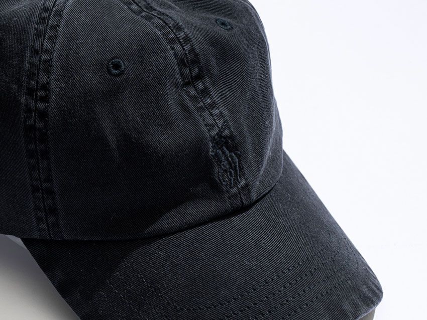クラシックスポーツキャップは、定番キャップにブラックガーメントダイを施したアイテム。フロントにはトーナルカラーのポロ ポニー刺繍、バックジャスター上にはPOLOのロゴ刺繍を配し、裏地や細部のパーツまでブラックで統一。洗練された印象と、程よく力の抜けた表情を併せ持つ仕上がりだ。