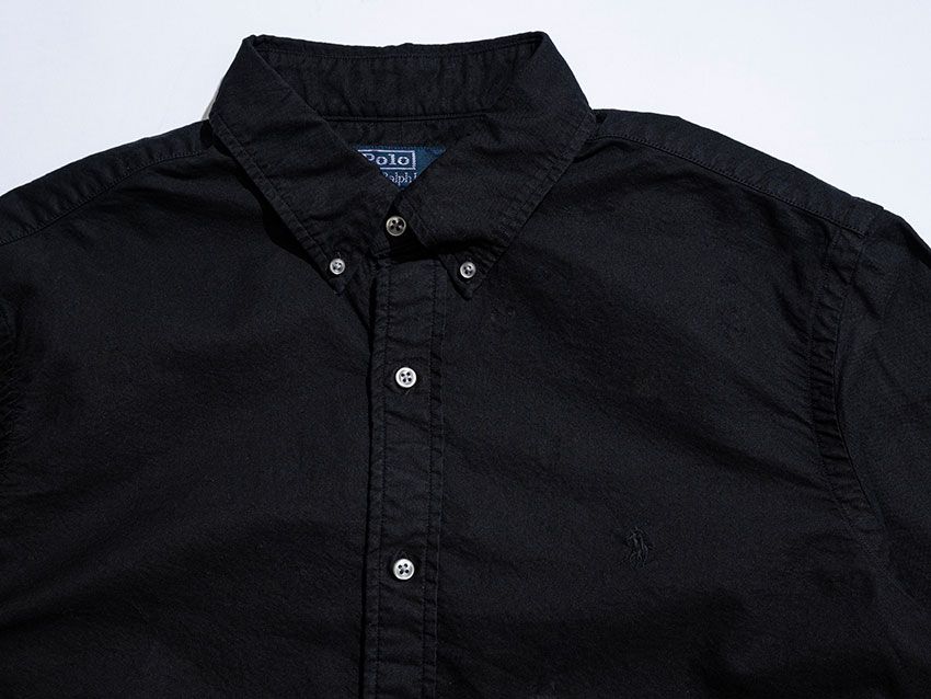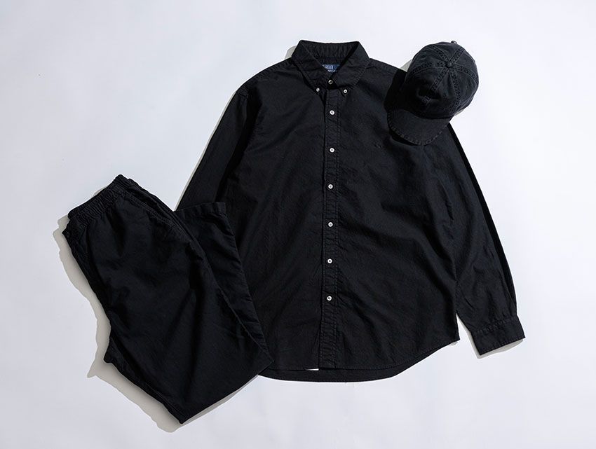 ボディとトーンを揃えたポロ ポニー刺繍や、暗色のボタン使いによって、ブラックの魅力をより引き立てている。ウォッシュ加工による柔らかな着心地もポイントだ。