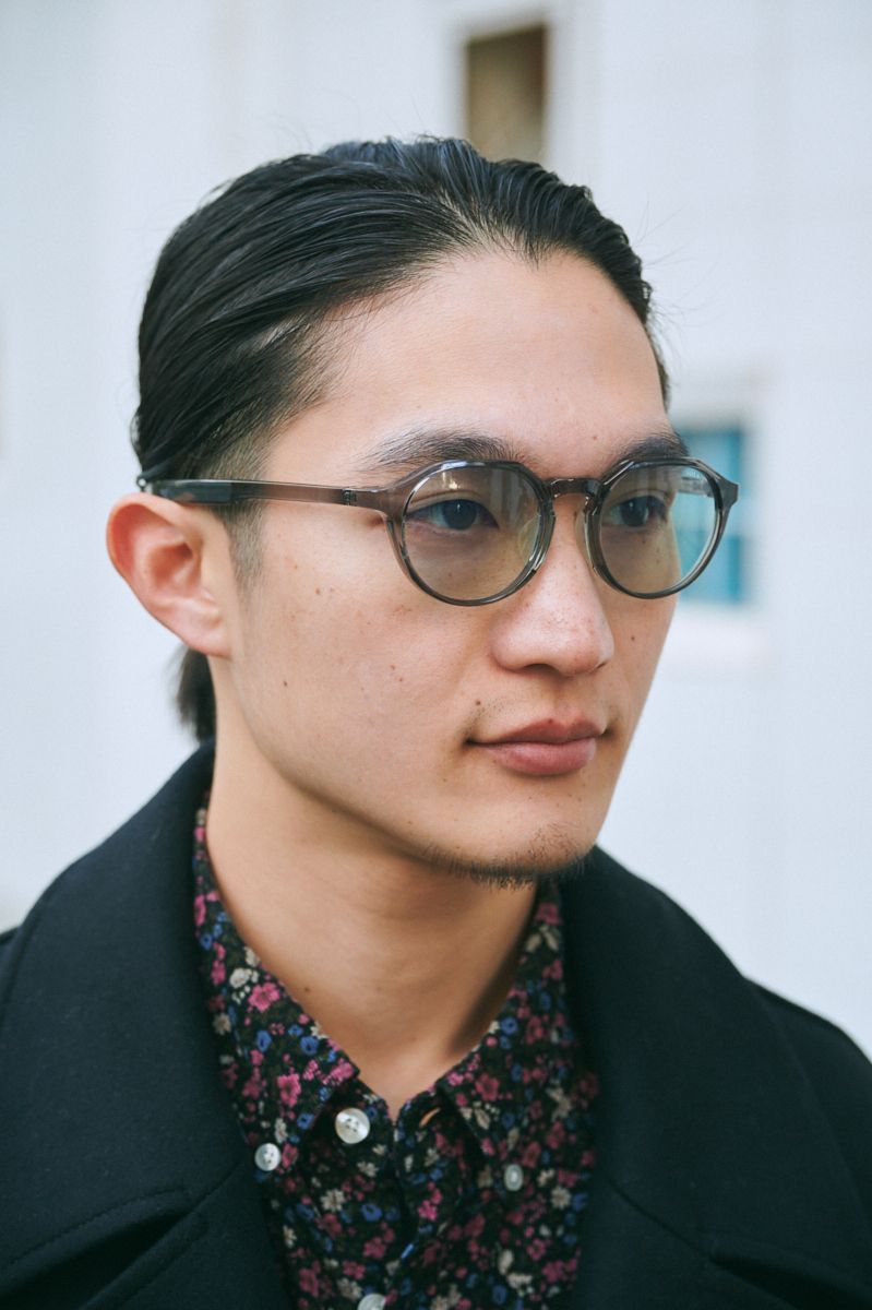 コート、パンツ=ともにユナイテッドトウキョウ シャツ=エフティーシー シューズ=フレッドペリー 眼鏡=ソライズ ブレスレット=サンローラン リング=ホーセンブース リング2=グッチ