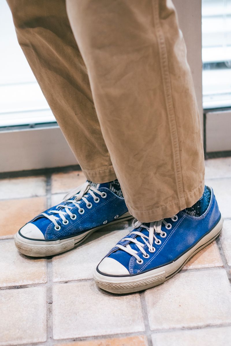▶︎下村さんのスナップをすべて見る下村拓也さん(31歳)アメカジが定番の男性にとってもコモリは有効だ。バンドカラーのGジャンにコンバースという組み合わせを、安心感と今っぽさを持って繋ぎ合わせてくれるのがタックの入った9分丈のチノーズだ。