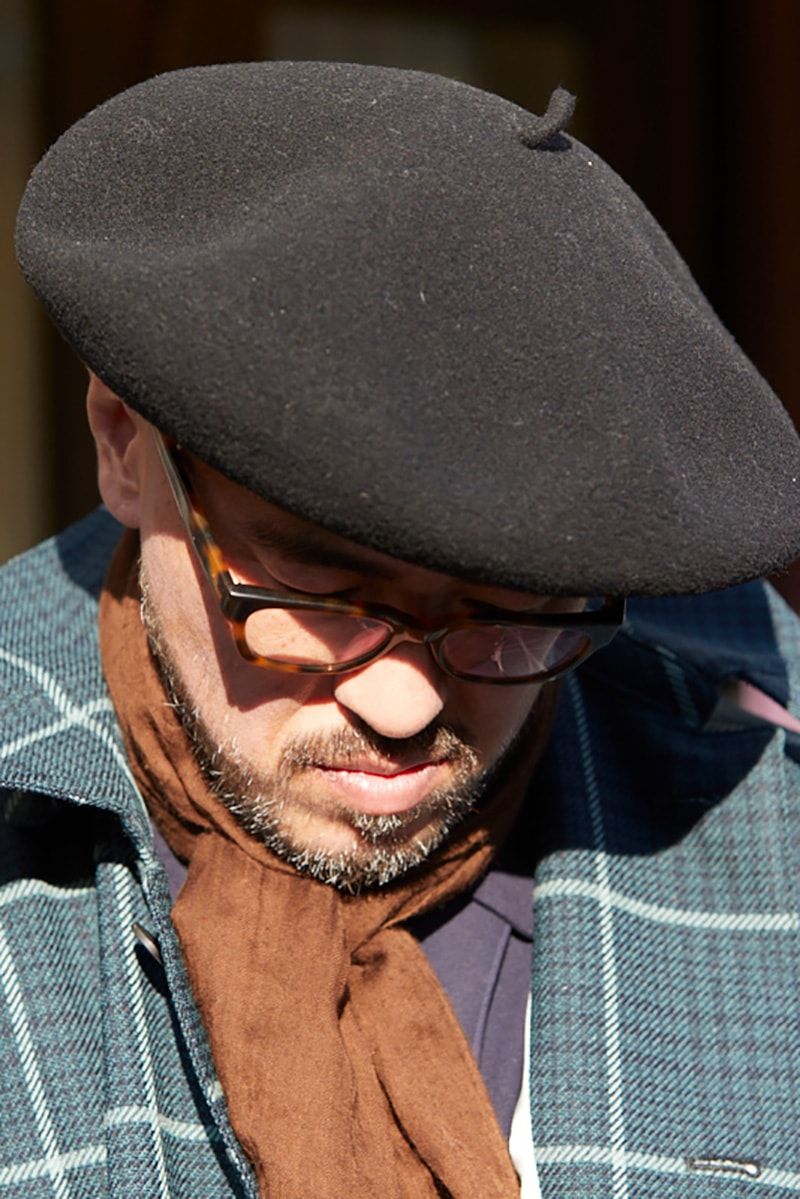 ▶︎茂木さんのスナップをすべて見る茂木 学さん(47歳)チェックのコートにネイビーのジャンプスーツ、足元はレザーシューズという大人らしくファッションを楽しんだスタイルだ。この「渋さ」が溢れるスタイリングには、巻き方もフロントに垂らしたクラシカルな空気感がマッチする。