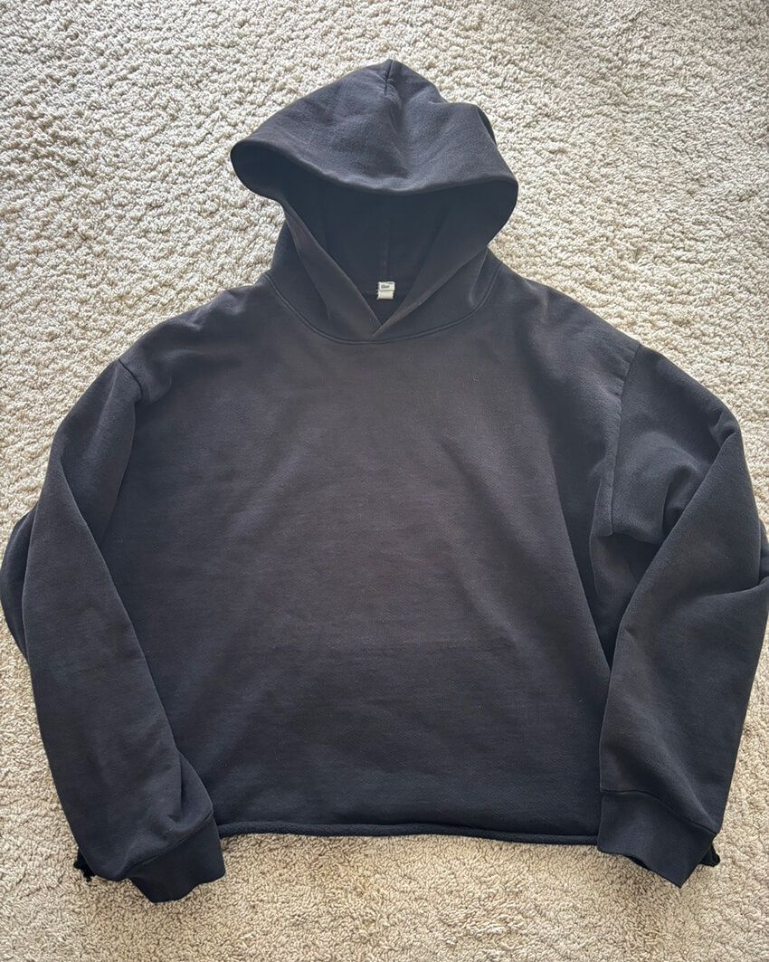 「最近は、何年も寝かせたロスアパのパーカをよく着ています。以前ヘビーユーズしていたので、新品にはないエイジングがありますし、さらに裾のリブとフロントポケットをカットして、一点物として着ています」。