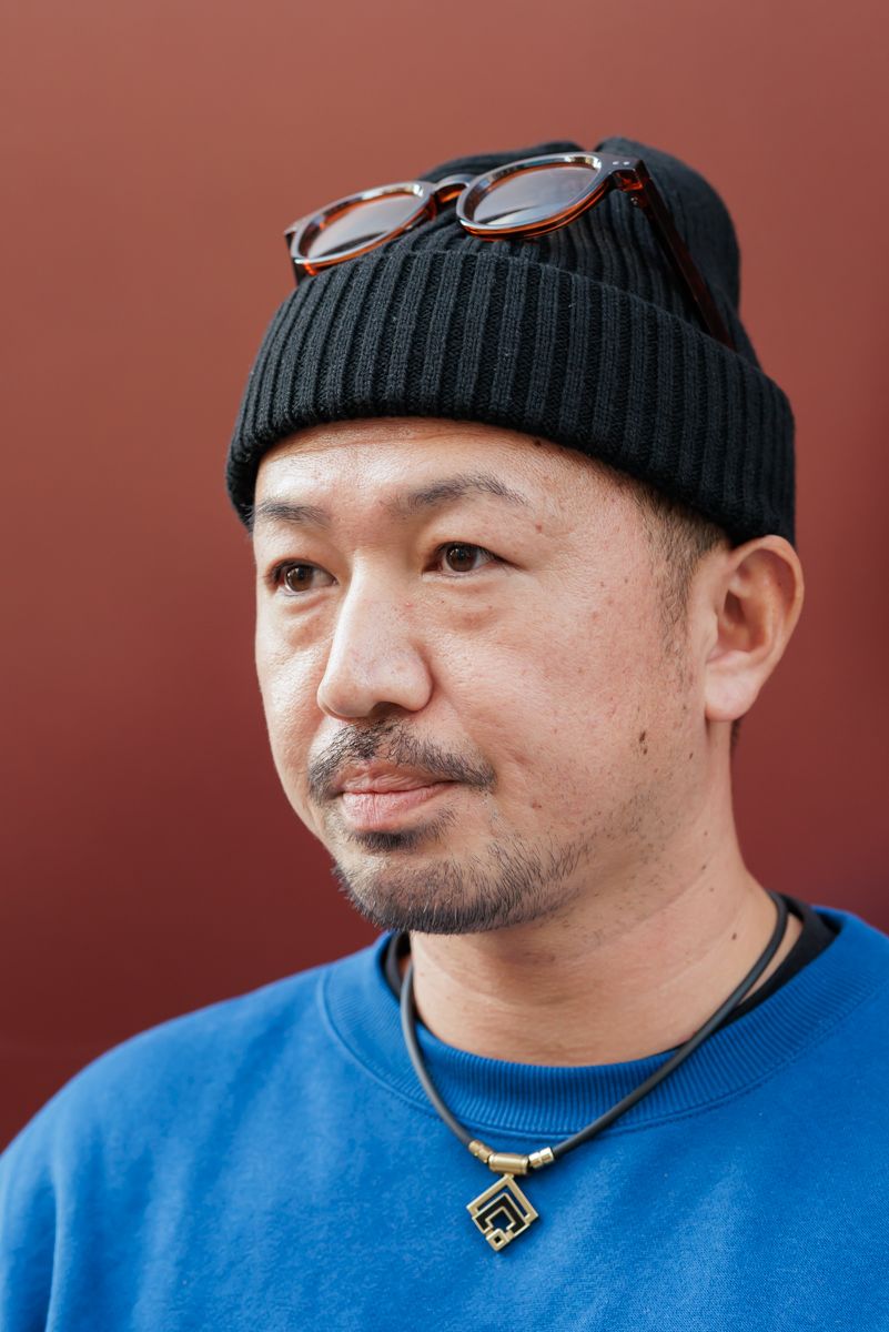 ブルーのスウェットと黒パンでミニマルに装った浦田さんは、ニットキャップにデミカラーのボストンタイプをオン。イヤミなく、若々しく、ちょっとした遊び心を覗かせた。