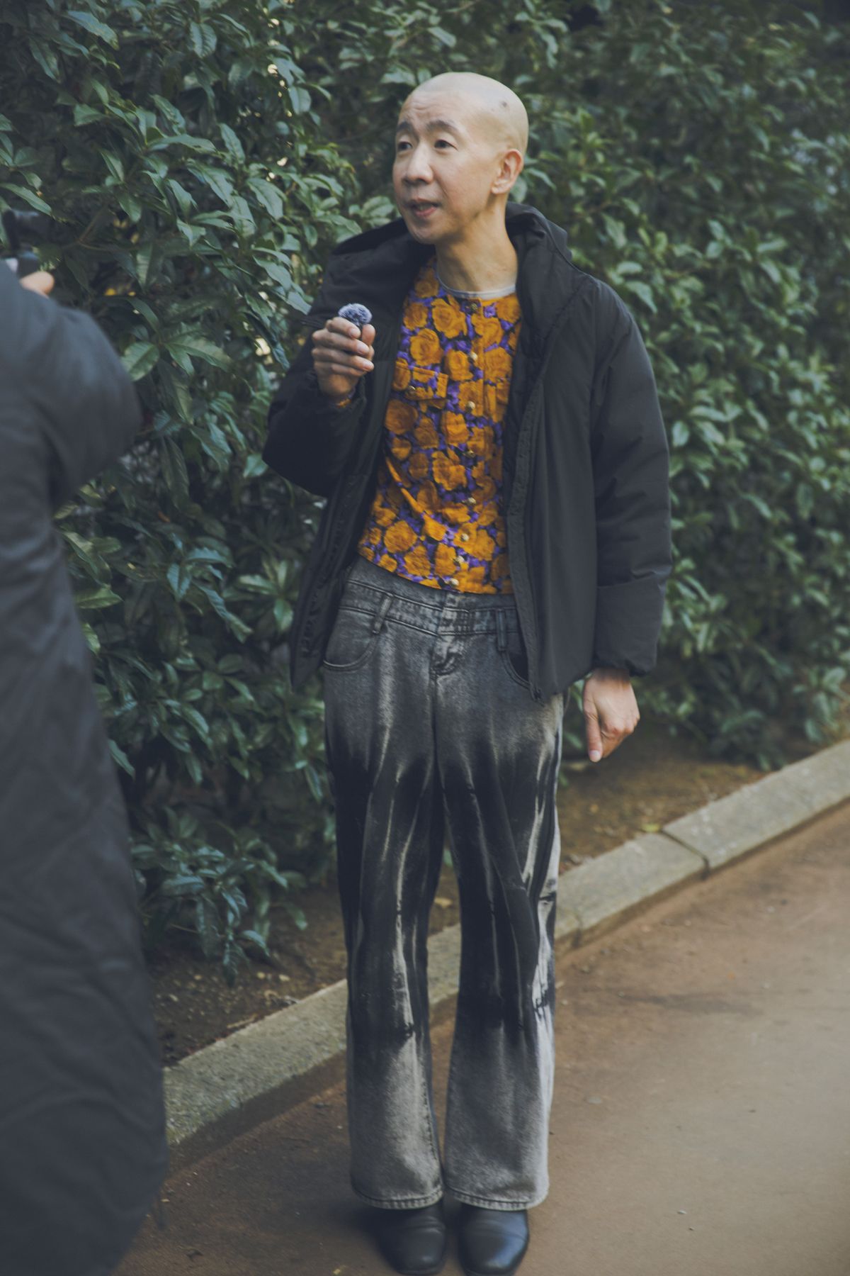 ――靴はどちらのものですか?ひょうろく タケオキクチ。これも古着です。仕事柄、脱いだり履いたりすることが多いので、お洒落なスリッパをずっと探してるんですけど、今はこれしか知らなくて。