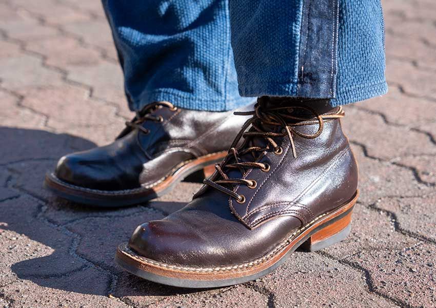 シューズはホワイツブーツの名品「セミドレス」。この日のコーディネイトにも、見事にハマっている。