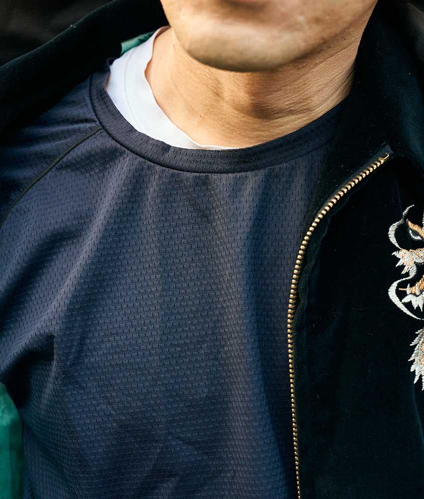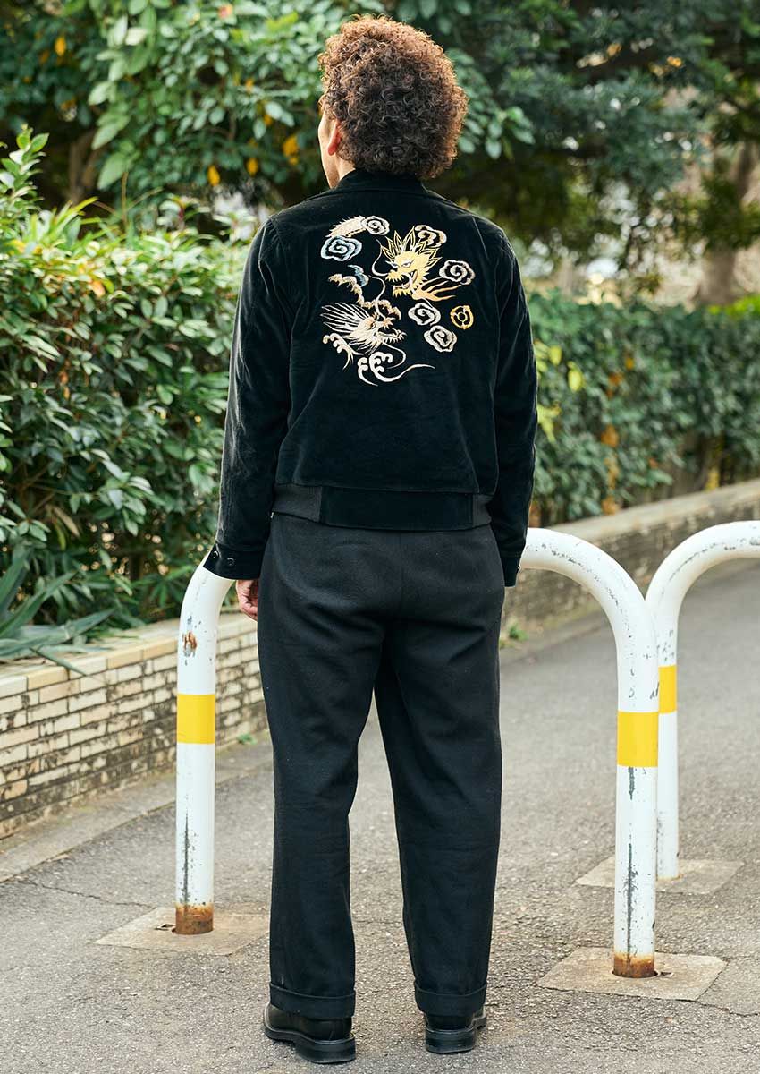 周平魂「1940〜50年代のアメリカンスタイルを基調にしたアイテムを作っている『グルービンハイ』というブランドのベトジャンです。本当は秋に着ようと思って発注していたんですけど、結局できあがったのが冬で。でも、せっかく届いたから無理して毎日着ています(笑)」。