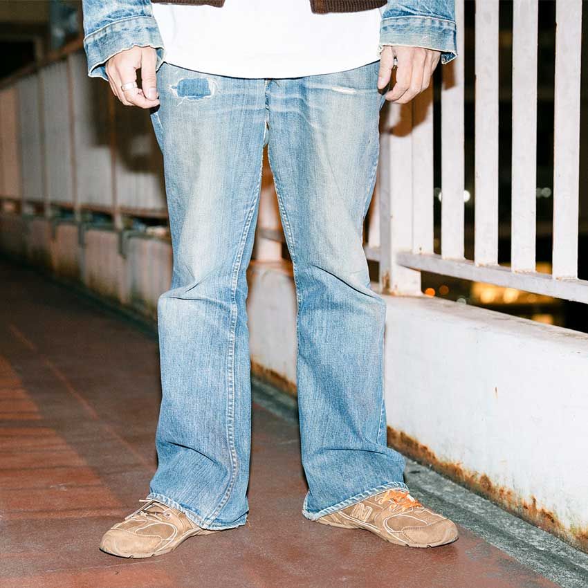 「パッチが取れちゃっているので正確にはわからないけど、たぶん646か684だと思います。これはネットで見つけました。ちょうど2000年くらいに、スタイリストの伊賀大介さんが提案していたブーツカットにサンダルやスニーカーを合わせるみたいなスタイリングがずっと好きなんです。流行りのワイドシルエットより、自分の好きなものを着たいなと」。