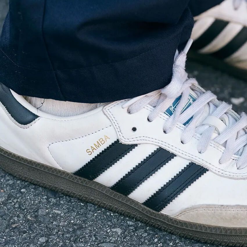 ▶︎野木さんのスナップをすべて見る野木雅生さん(44歳)控えめな見た目と確かな安心感から人気気再沸騰中の名作サンバを、シンプルに履きこなす好例である。白とブルーのカラーリングが、シャツ&パンツの色と心地良くリンクする。