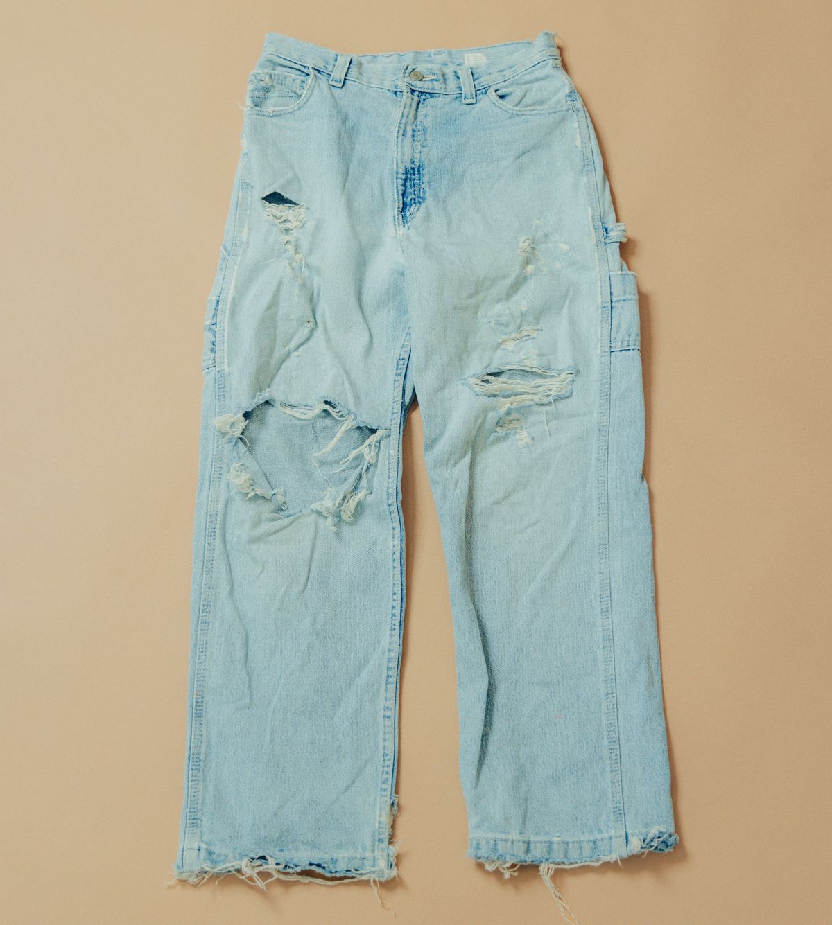 ライトオンスで夏も快適な’70年代のセーラーパンツ。「明るめのブルーや大胆なフレアシルエット、パッチポケットなど、ジョン・レノンやヒッピーのムードを感じました。ペンキ汚れもグッド」。