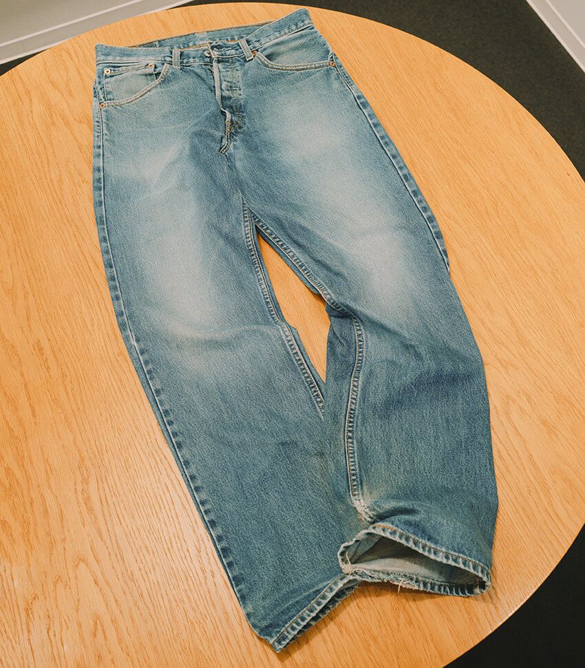 「正直、シルエットすら知らずに買いました(笑)。調べても全然情報が出てこなかったんですよ。濃い色の501があるなら、薄い色のバリエーションも欲しくて。これはウエスト30、レングス32のレギュラーストレート。穿いてみたら、501より少し細身で、野暮ったさがないのが気に入っています」。