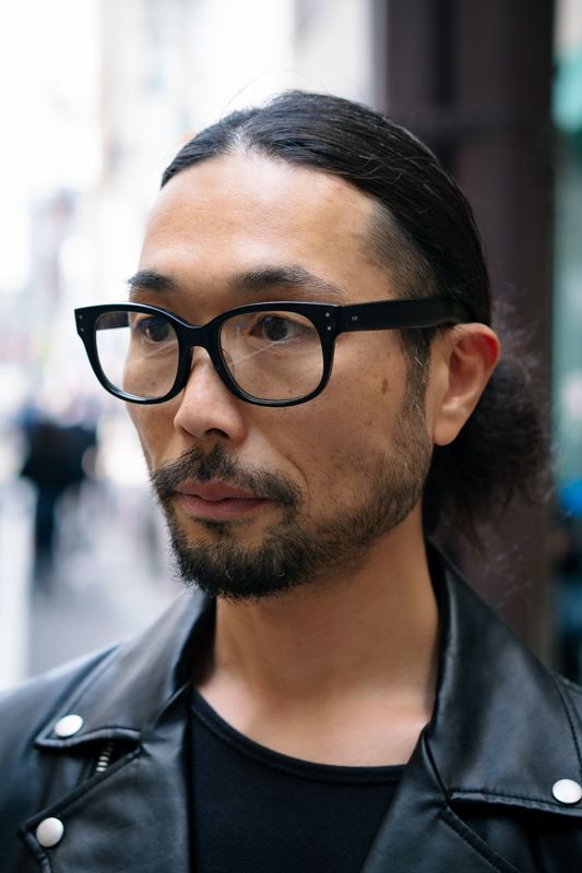 ライダーズジャケット=グラム カットソー=ユニクロ パンツ=ディーゼル シューズ=リーボック 帽子=カシラ 眼鏡=白山眼鏡店 腕時計=セイコー ネックレス=タッドポールン