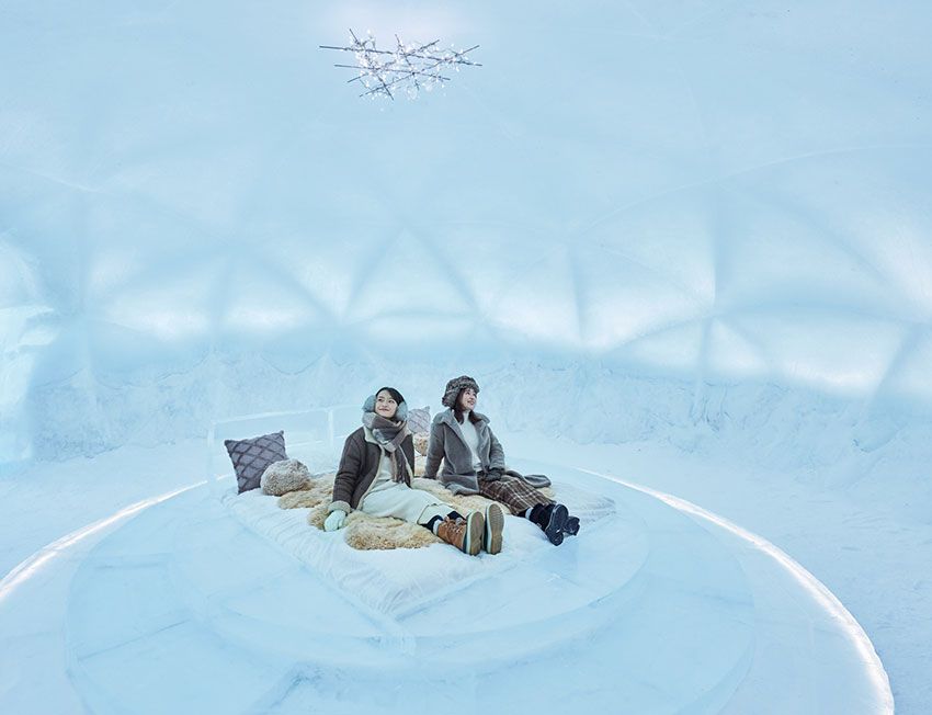 冬の風物詩ともいえるのが、敷地内に冬の夜だけに現れる氷の街、「アイスヴィレッジ」。