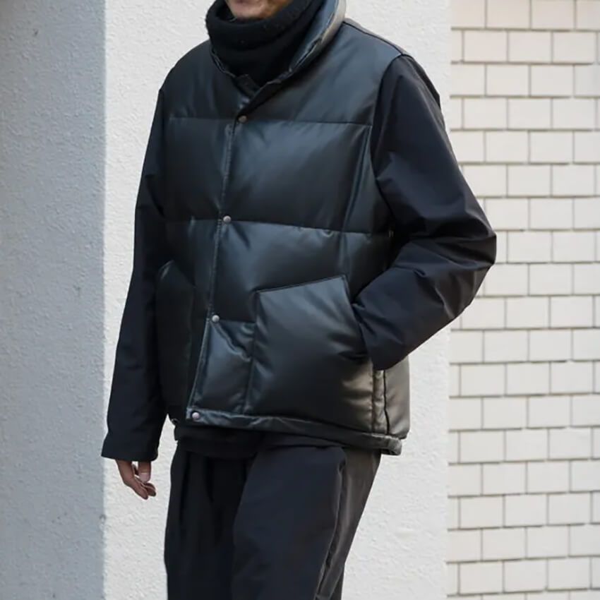テアトラの機能的セットアップに、アルヴァナのレザーダウンベストをさらり。動きやすさが、そして上質なシープレザーのハリとツヤが、いい大人にしっかり寄り添う。