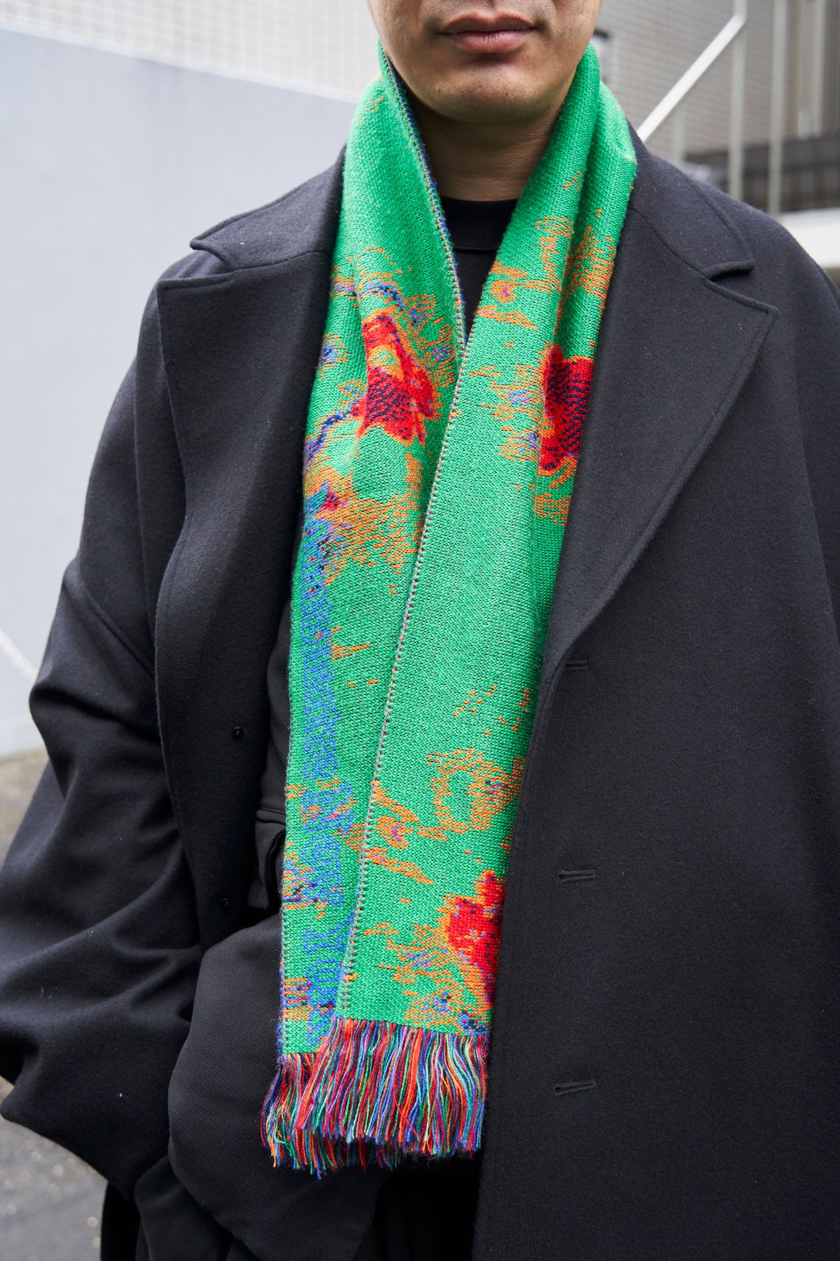 コート=クリストファーネメス ジャケット=クリストファーネメス×コムデギャルソン パンツ=イズネス シューズ=ドクターマーチン×ソフネット×エンド 眼鏡=ルノア マフラー=モンマルトルニューヨーク