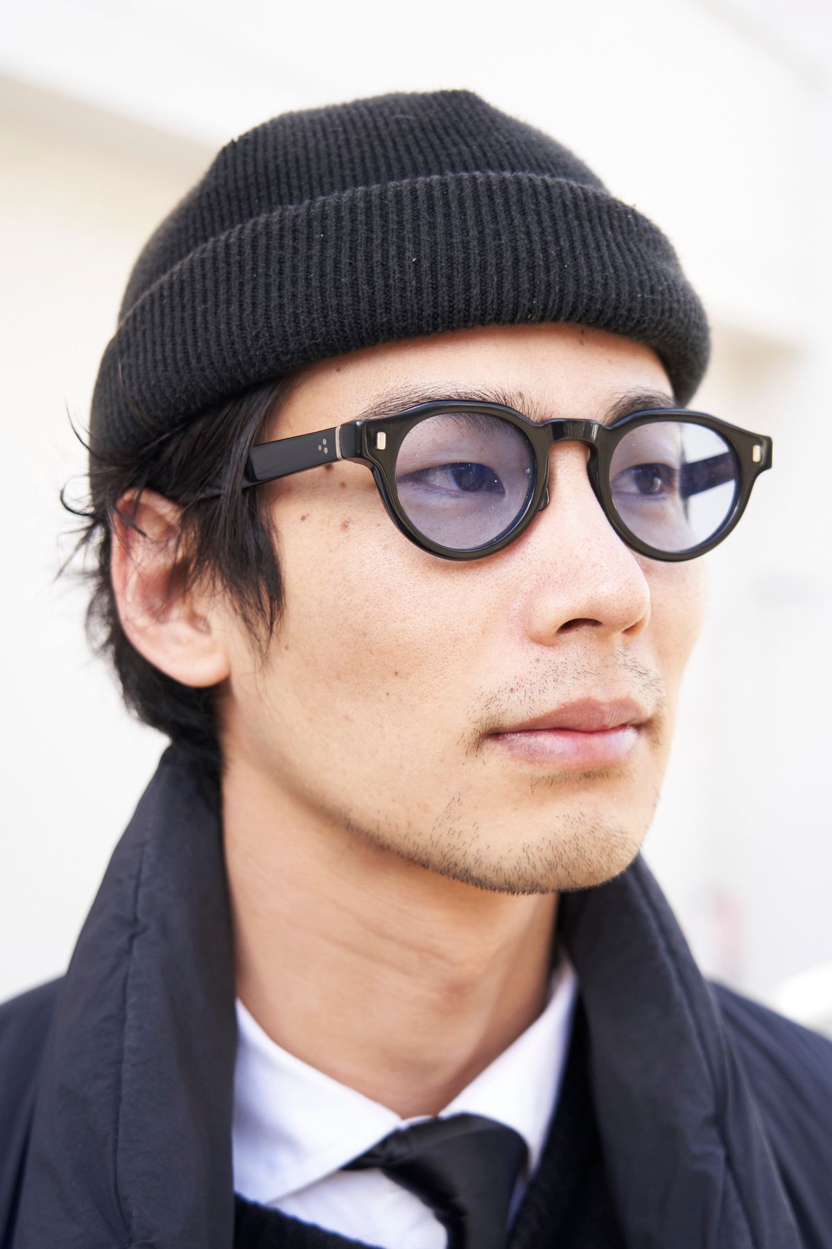 ▶︎たかはしさんのスナップをすべて見るたかはしさん(33歳)ショルダーの位置がガッツリと下に設けられたビッグシルエットのコートと8分丈のワイドスラックス。大・小・長・短を上手く使い分けることがオールブラックを豊かに楽しむための秘訣だ。