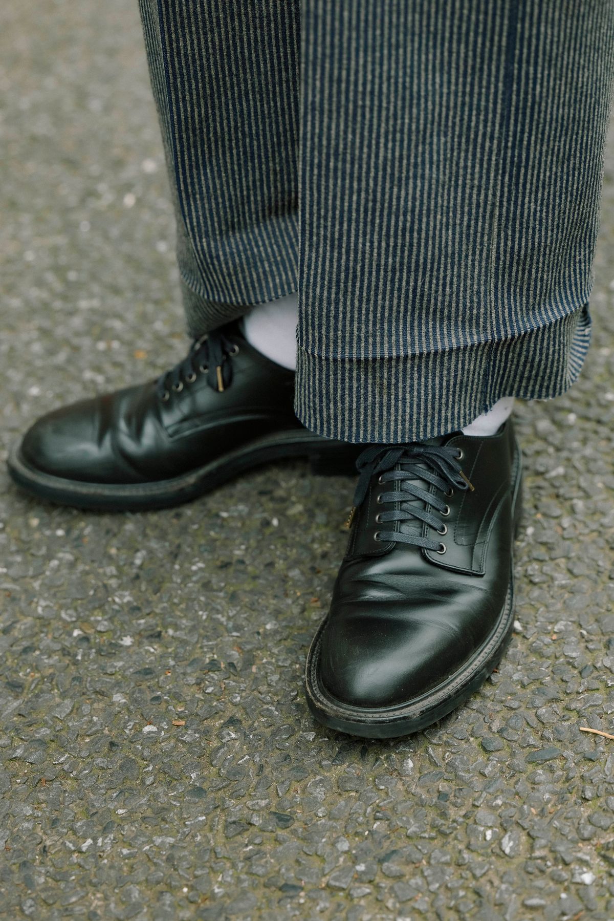 大きいサイズのムーンストーンで、90年代の匂いを強烈にアピール。一方、柔らかなスラックスと品のいいレザーシューズを合わせるなど、ミックスセンスは完全に令和だ。