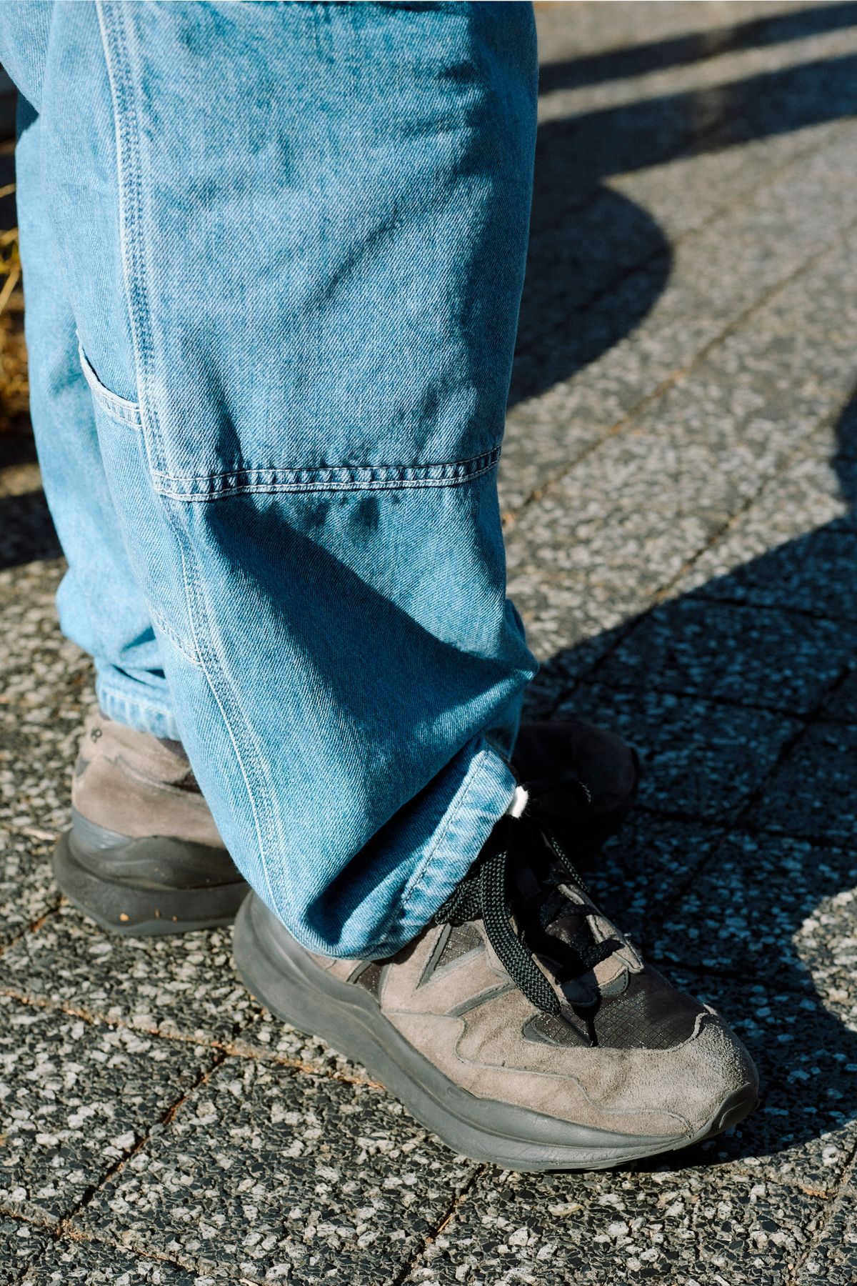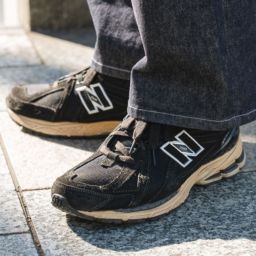 そこに合わせたのは「M1906R」。風合いのあるスエードとメッシュのコントラストが特徴的な一足で、ソールはニットキャップと同系色でさりげなくカラーリンク。巧い。