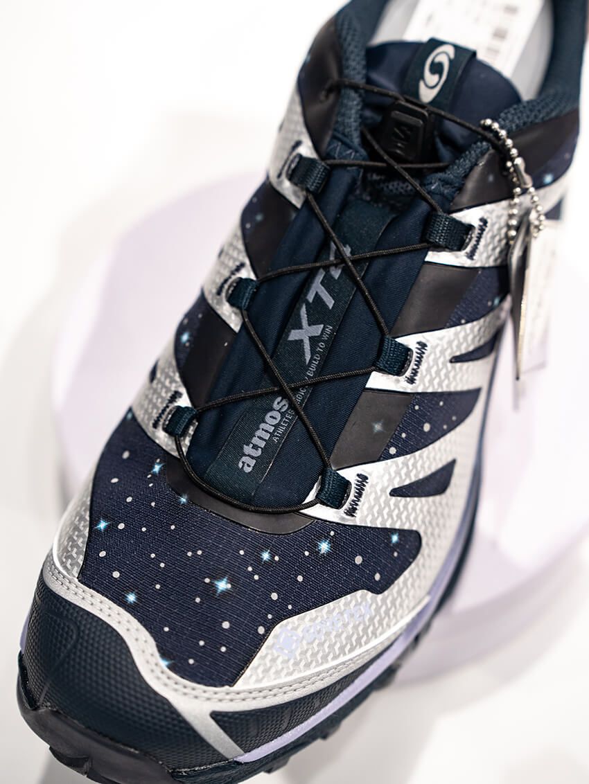 ラストを飾るのは、テックな雰囲気でシティでも大人気のサロモン「XT4」。本作は、スニーカーブティックとして「サロモン」と世界初のコラボを実現した、アトモスらしさが光る新作別注である。