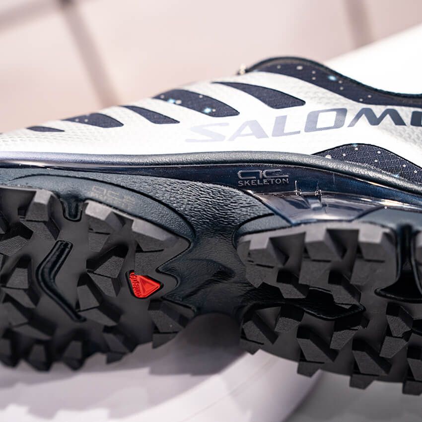 「ゴアテックス メンブレン」による防水透湿性能に加え、高いグリップ力を有す「コントラグリップ アウトソール」、歩行時に安定感を生み出す「ACS(アジャイル・シャーシ・システム)」を搭載。トレイルランニング譲りの性能はそのままだ。