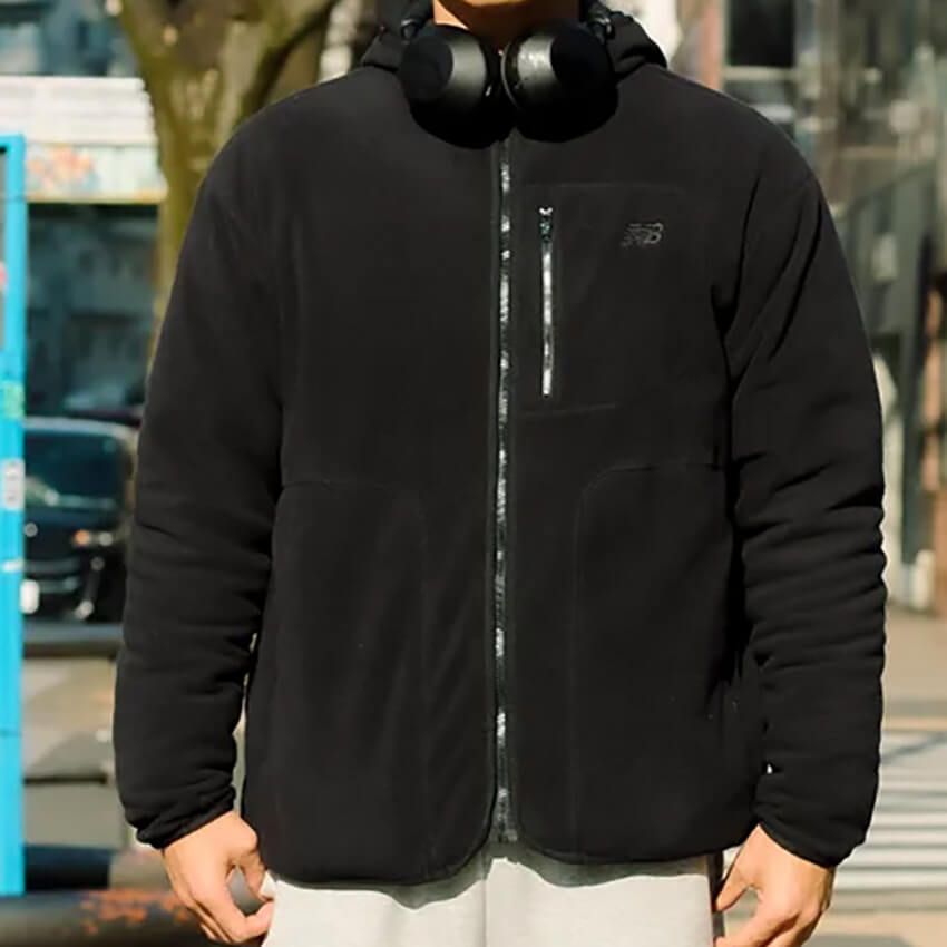 一方、漆黒のフリースを選択した鈴木さん。一見、匿名的な一着だが、よく見ると胸元に“NB”のロゴが。そう、ニューバランスのフリースジャケットだ。適度にボリュームのあるシルエットでアウターとしてちょうど良さそう。