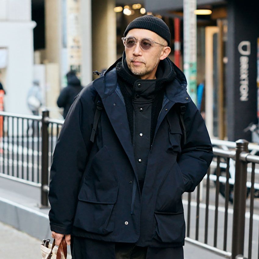 話題を攫ったコラボレーションのフェイクレイヤードコートとフリースを主役にした真冬ファッション。そのトップスに目が行きがちだが、注目したいのはボトムス選び。