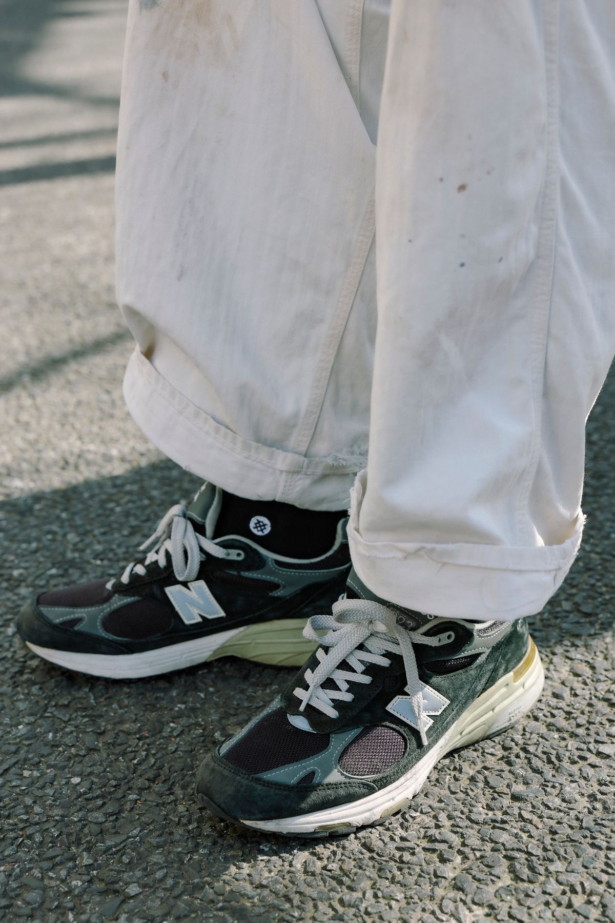 メイド・イン・USAの「993」は、ブラックスエードにメッシュ、グレーのスムースレザーなど、モノトーンながらパーツによって素材と色を使い分け、非常に存在感のある一足に仕上がった。