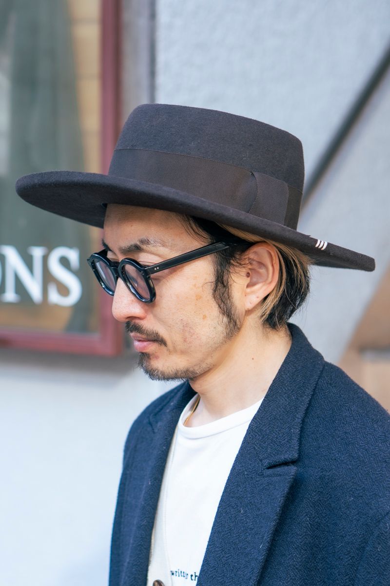 色味は清潔感のあるブルー&ホワイトのグラデーションで整え、つば広のハットとレザーシューズでクラシカルな正装的イメージをトッピング。清く、正しく、気持ち良く。いいね。